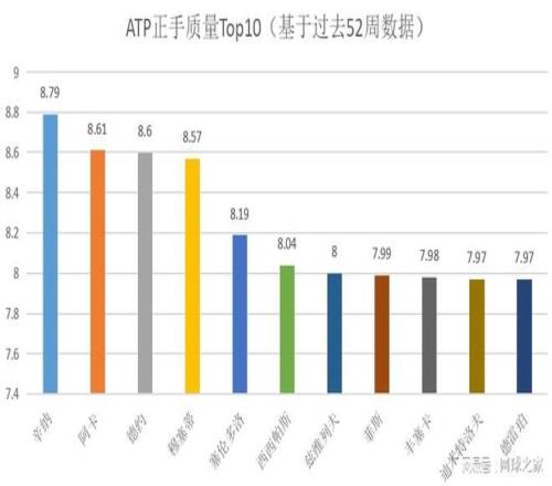 基於以上三大類指標,ATP列出了過去52周正手質量Top10榜單,如下圖所示。
