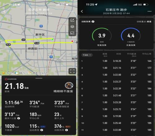 20公裏時,她抬手看了下看手表的時間,發現自己好像PB有望,決定再衝刺一把的她在最後1.2公裏將自己的配速提到了3分16。