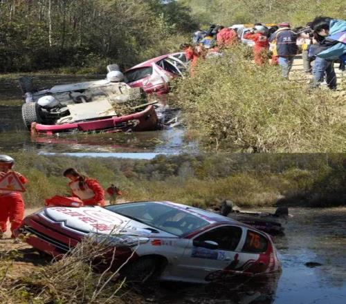 張諾的車緊隨其後,同樣因減震失效在落地後幾乎失控,車尾也栽進水塘。她和她的領航員僥幸脫險,並抓住落水的隊友,將她們從水中拉出。如果水麵再深30厘米,也許兩位隊友就沒命了。