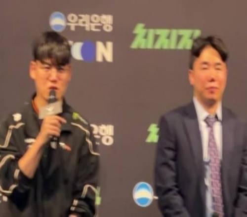 Gumayusi:選擇這兩個的話是因為用她們打出了不錯的表現,選擇芸阿娜的話是因為她皮膚不太多而女槍的話第五局的時候用這個角色打出了一些小亮點覺得很有意義。皮膚形式的話因為是第三個皮膚了,所以以比去年更漂亮做出考慮,考慮了很多種組合形式,然後拳頭方麵也在努力地準備,我很期待