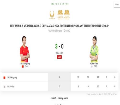 28歲的陳幸同在2026國際乒聯單打世界杯保持了穩健的狀態,她在繼小組賽第一戰3比0擊敗德拉戈曼之後,又在第二戰3比0擊敗葉伊恬,從而兩戰全勝出線,挺進了16強。