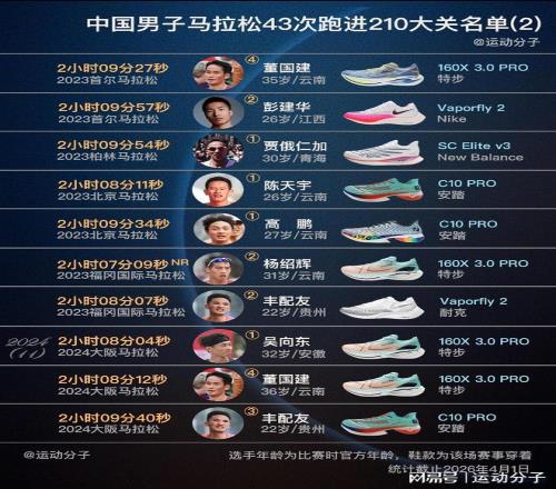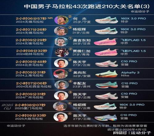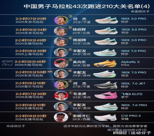從1997年北京馬拉鬆,胡剛軍第一次跑進210大關,到今年正好第30年。截止4月1日,共有18人、43次sub 210;