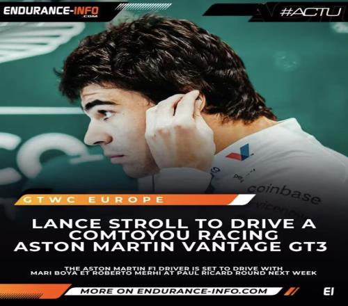 4月11—12日期間將於保羅・裏卡爾賽道舉辦的GT世界挑戰賽歐洲揭幕戰公布了參賽名單,現役F1車手蘭斯·斯特羅爾將參與其中。