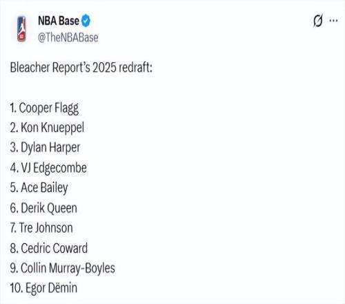 北京時間4月10日,2025-26賽季的常規賽接近尾聲,知名美媒Bleacher Report撰文重排2025年選秀。弗拉格仍是狀元,...