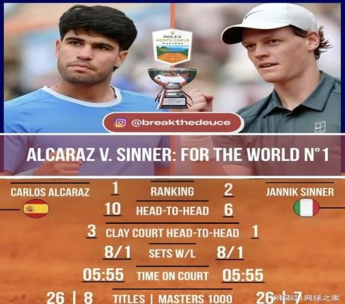今晚蒙特卡洛的紅土場上將見證第17次阿卡與辛納的交鋒。沒有誰是不可戰勝的,也沒有誰是理所應當的失敗者。兩個站在世界之巔的年輕人,將用一場決賽回答一個最簡單也最複雜的問題:在今天,誰的網球更好?更重要的是,誰贏得了這場決賽,誰將占據世界第一的寶座!