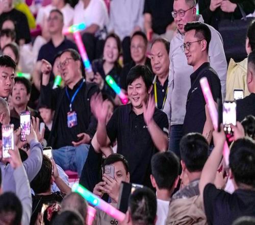 2026年4月18日晚,張雪來到湖南瀏陽天空劇院,與廣大機車迷和來自全國各地的遊客,共同觀看2026世界超級摩托車錦標賽(WSBK)賽事轉播。視覺中國 圖