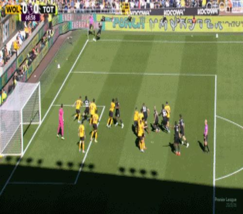 開場僅11分鍾,熱刺便獲得良機。狼隊後場失誤,穆阿尼斷球後的打門卻稍稍偏出。
